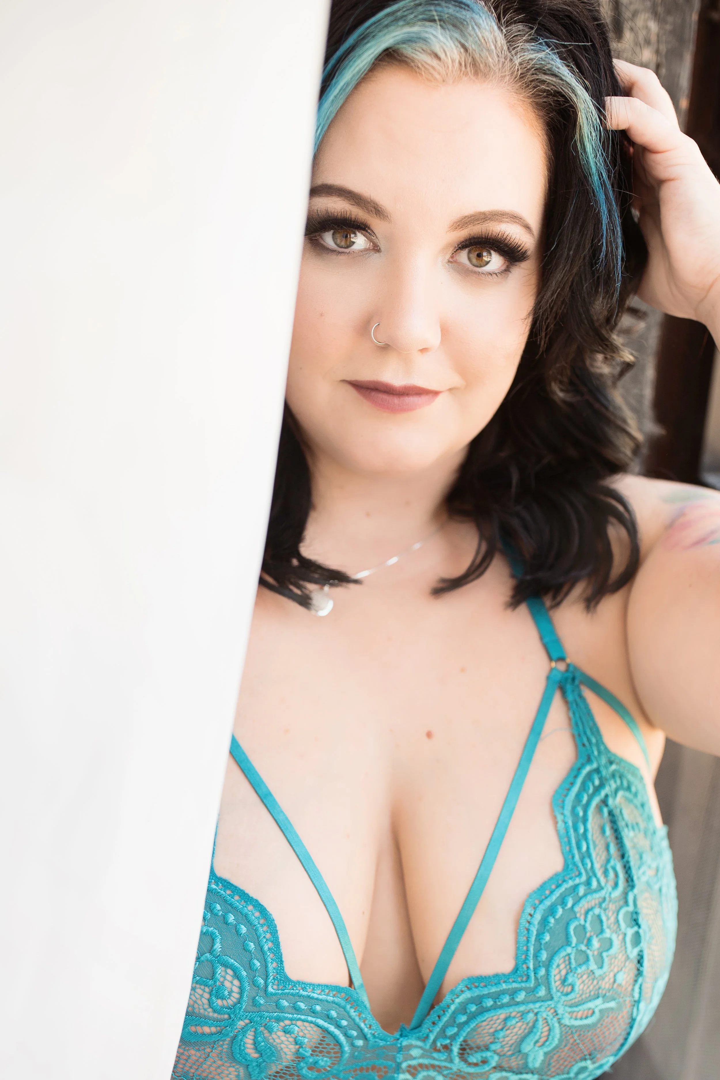 Paige has also graciously let me share her images with you! Her sister convinced her to sign up for a mini session with me and after that she knew she needed the full experience! She as a size 26 or 3/4 xl during her sessions and got her outfits from Torrid. She says, “Just do it! You only live once and Lehia is super easy to work with and makes you feel comfortable the entire time! Once you get your hair and makeup done you feel like a million bucks! You can be as covered as you want or if you’re willing to take a risk like I did you could have your tatas out with a door open not caring if the world sees.” And THAT she did! It was SO FUN and EPIC!!