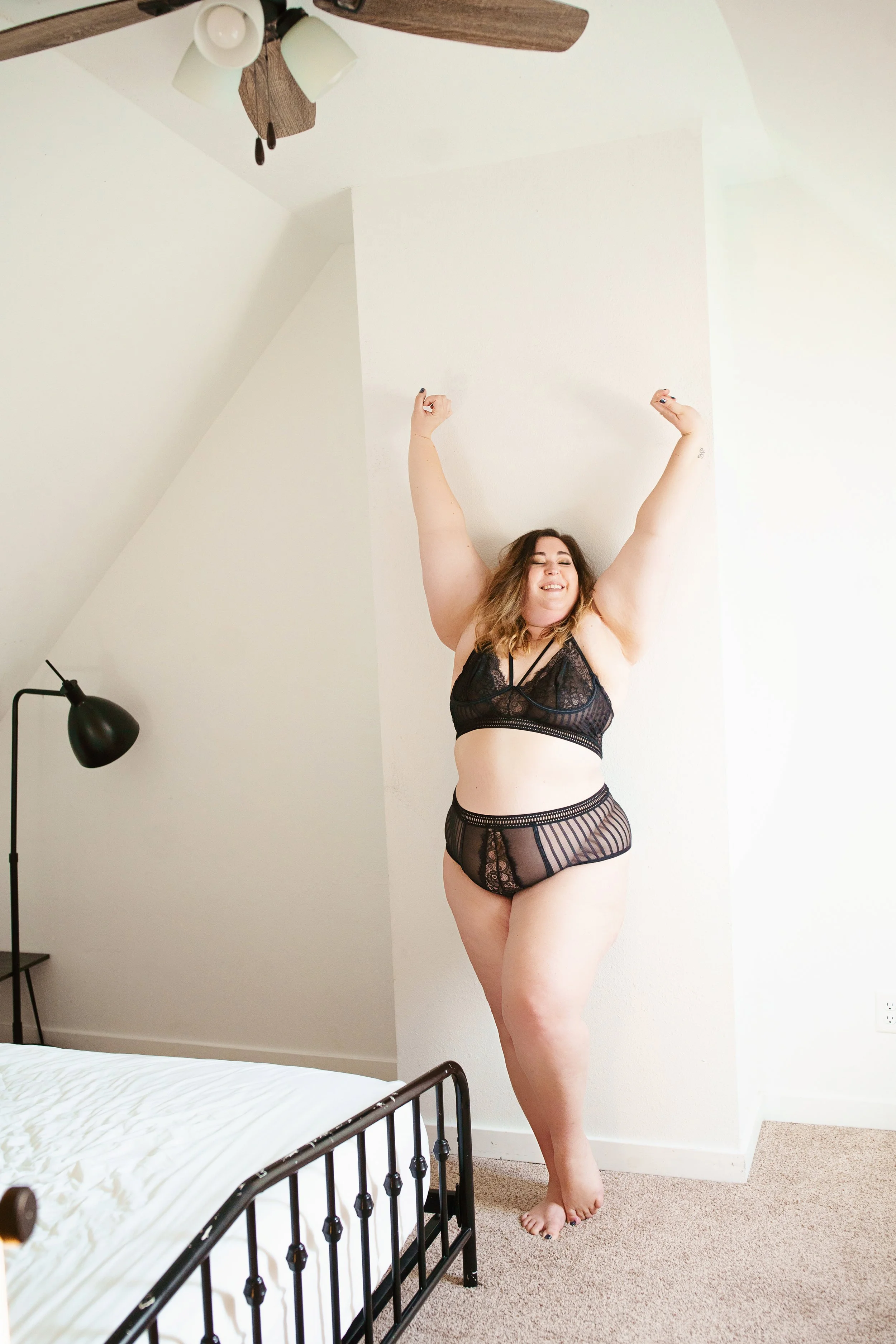 I wanted to share some examples of clients of mine who consider themselves plus-size and have given me permission to share their images and information. While sharing our boudoir images is vulnerable for us to do, we know that it very well may convince another woman, similar to us, to take the leap and try a boudoir session.. and potentially change their life. (I know that seems dramatic, but having a positive experience towards your body is sometimes a big catalyst towards a change in self-talk and the way we might think of ourselves, having a snowball affect towards the rest of our lives! You know what I mean?!)