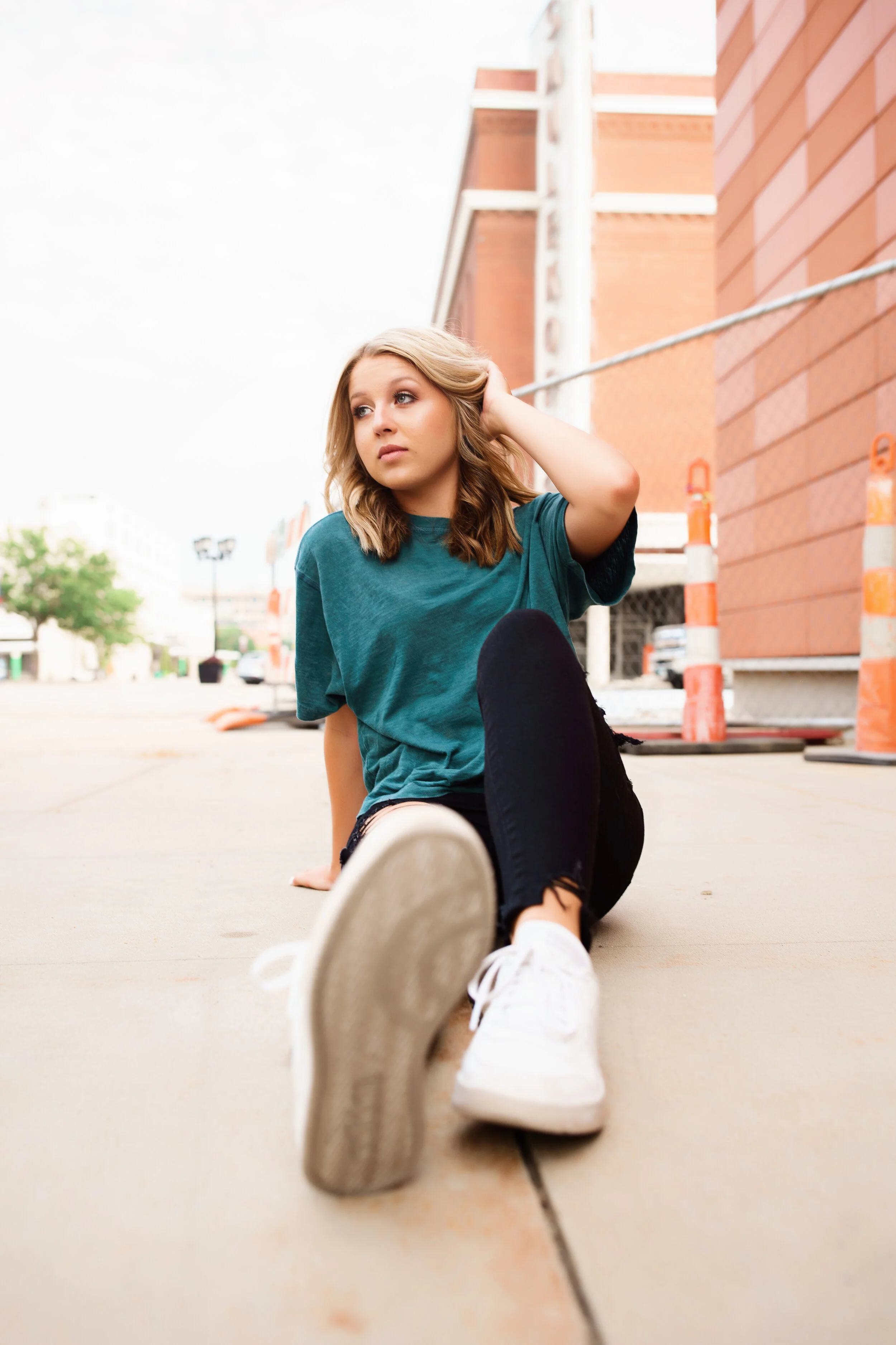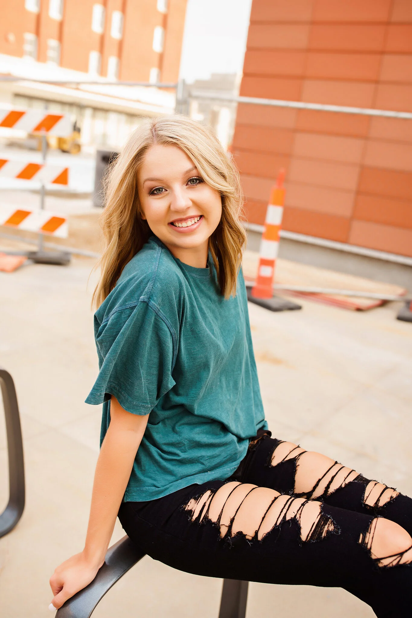 Then we headed back to our cars, hit up a parking garage and changed into Chloe’s FAVORITE outfit. I loved the grunge-y vibes I got from it, but wasn’t sure we were close by anything that matched that aesthetic. We WERE right next to a construction site but I thought to myself, “if you ask them to shoot there, they will think you’re a crazy person.” But then, Chloe’s mom asked what I thought about using it.. so it was fate! I showed Chloe the back of my camera to make sure what I was capturing was what she was looking for, and she loved them! So, I think we nailed the “unique” portion of her senior pictures!